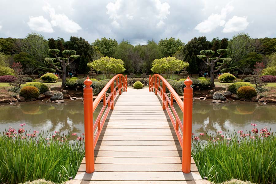 I photographed this bridge during a popular flower festival in a Japanese garden. It was swarming with people and I could have waited all day and not got a clear photo of this bridge. But as long as I have ONE SIDE clear, I can just flip it and voila, all the people are gone. Then I could just cut it out and composite it into another scene if I wanted.